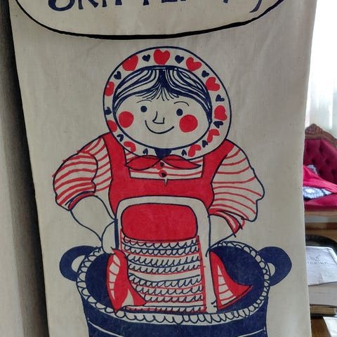 Flott bilde i stoff med morsom tekst.