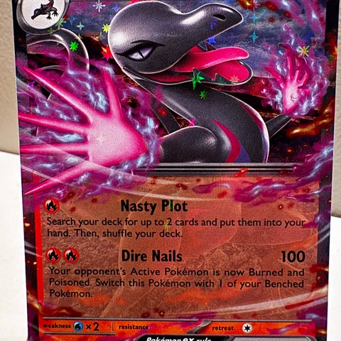Pokémon Trading Card med motivet Tenacious Tail. Kortet er holografisk og har angrepsverdier 60+ for Tenacious Tail og 150 for Destructive Drill. Kortet er i standard kortstørrelse og har farger som gul, rød, blå og svart.