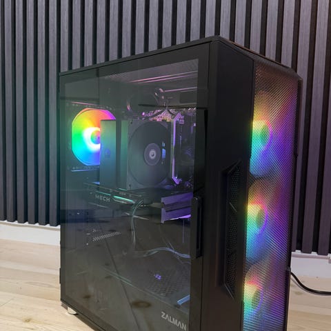 Lenovo Gaming Desktop PC utstyrt med NVIDIA GeForce GTX 1650 grafikkort. PC-en har flere USB-porter og lydutgang. Kabinettet har et ventilasjonspanel og et transparent sidepanel som viser intern maskinvare. PC-en er egnet for gaming og generell bruk som krever grafikkytelse. Du får med alt som er bildet. Sender ikke.
