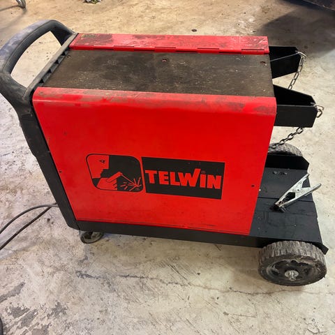 Lincoln Electric Compact 200 Plus Mig sveiseapparat med rødt kabinett. Maskinen har flere innstillinger for spenning og strømstyrke, og er designet for 230V /400v strømtilkobling. Den er utstyrt med håndtak for enkel transport og har en robust konstruksjon for industrielle sveiseoppgaver. Har blitt brukt til å sveise aluminium.