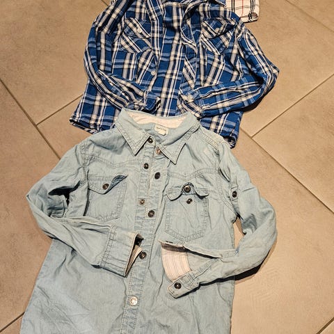 2 kortermet skjorter fra P.O.P str. 4-5 + 7-8 år. Fremstår som nye.