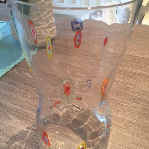 Hadeland Glassverk vase i klart glass. Vasen har en høy og buet form med en bred åpning og en solid bunn. Den er laget av gjennomsiktig glass og passer til dekorasjon eller blomsterarrangementer. Lite brukt.