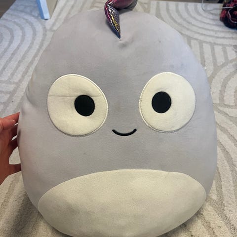 Trolls kosedyr pute laget av mykt stoff i lilla farge. Puten har et karakteristisk Trolls-design med hvitt, bustete hår og ansiktstrekk. Egnet som barneleke eller dekorasjon.