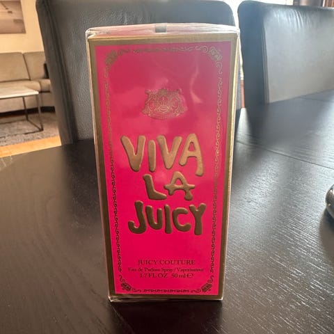 JUICY COUTURE parfyme 100 ml lukter ikke like friskt som før. Er igjen til øverst på merket foran 300 kr.