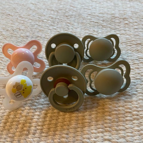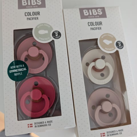 Ubrukte smokker fra mam og bibs, smokkene fra bibs er kun åpnet.