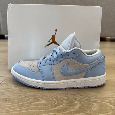 Air Jordan WMNS Air Jordan 1 Low SE sneakers i størrelse 36,5.Skoene har en beige og hvit fargekombinasjon og er laget i materialer som inkluderer skinn og tekstil. Designet er lavt på ankelen og passer for kvinner.prisen kan diskuteres 👍😊😘