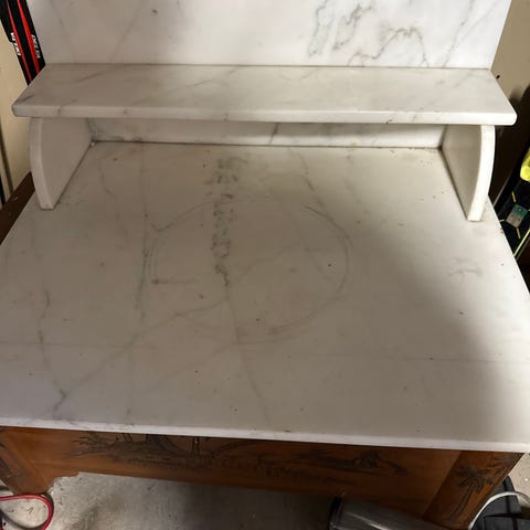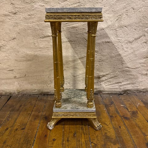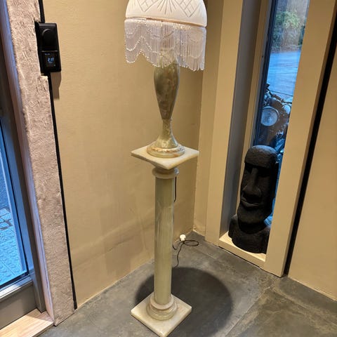 Massiv pidestall i ekte marmor fra 60-tallet selges. Dette er tung naturstein med vakker levd åretegning og en svært sjelden form som gir tilstedeværelse i rommet. Ikke nyere import, ikke kompositt – dette er original kvalitet som man knapt får tak i lenger.