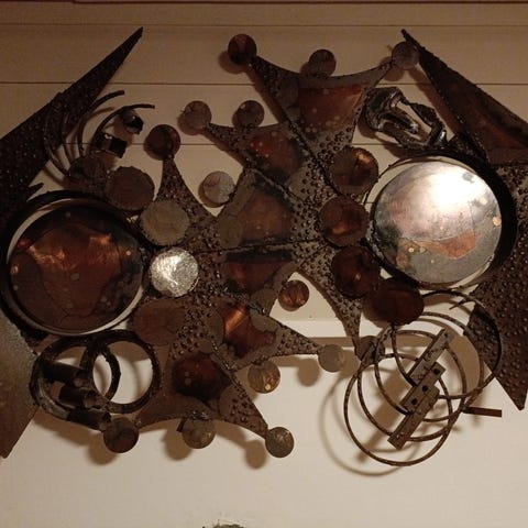 Metall vegg skulptur inspirert av mid cenury kunstner Marc Weinstein
