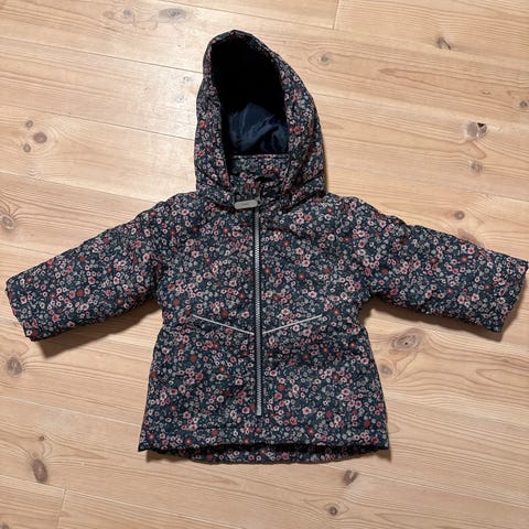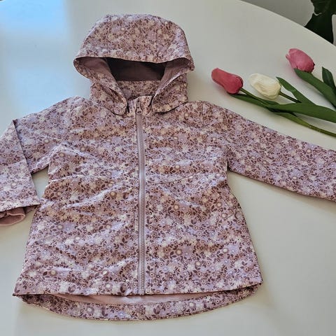 Utrolig søt Name it vindtett og vannavvisende jakke i størrelse 80. Jakken har flerfarget mønster med nydelig blomsterdesign. Den har hette, glidelås foran, og ribbestrikkede mansjetter for bedre passform. Jakken er laget for å gi komfort og beskyttelse mot værforhold for små barn.