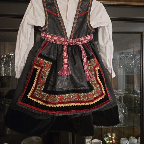 Strikket "Vestfoldbunad" selges uten skjorte og sølje.