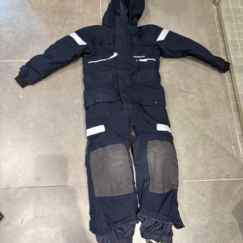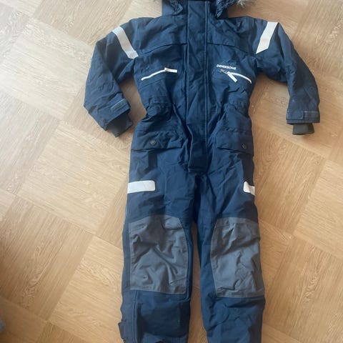 Didriksons Theron Kids Cover 3 barnedress i størrelse 110, blå farge, egnet for både jenter og gutter. Dressen har forsterkede knær, justerbare fotstropper og flere reflekser for økt synlighet.
