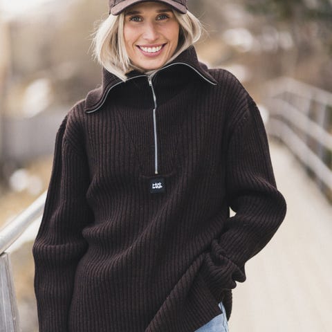 Genser, sweater, hals, glidelås, brun, brown, naturfarger, behagelig.