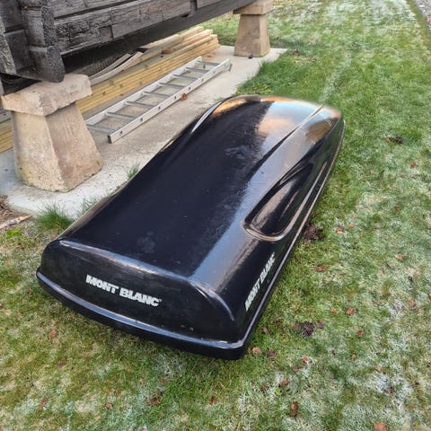 Skiboks stått på BMW 5-serie selges. Lavtbyggende og merkes lite under kjøring. Selges uten takstativ. Trenger ny lås.