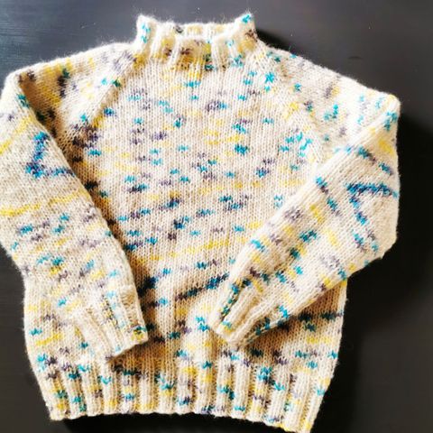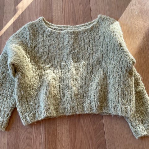 Helt ny chunky gretegenser til barn selges. Strikket den sjøl, men aldri blitt brukt. Strikket i Older fra Dale Garn og er 100% ull, god og varm. Str 8 år (128/134).