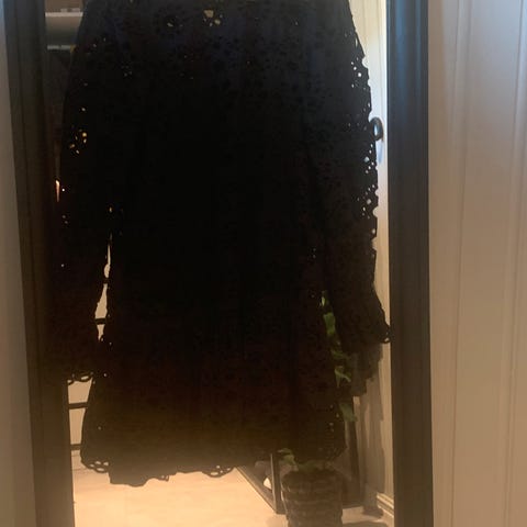 Rutete kjole i svært god kvalitet fra Blu. Brukt et par ganger, ingen synlig slitasje. Mykt bomullsstoff som faller pent. Sort fastmontert underkjole. Belte med spenne i samme mønster som kjolen. Tre knapper på mansjettene, glidelås i ryggen og lett pufferm. Ny pris var 1500. Bilde med modell er produktbilde fra Vic.