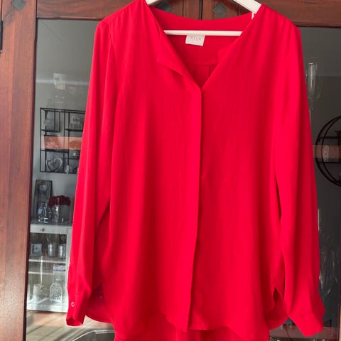 Maison Scotch Bluse i størrelse M, oransje farge. Blusen har lange ermer og er laget av et lett, delvis gjennomsiktig materiale. Egnet som overdel i ulike anledninger.