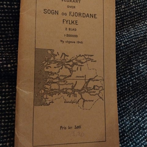 Gammelt kart over Sogn og Fjordane fylke fra 1945