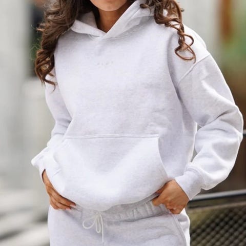 Jakken har snøring i midjen, så den vil passe M/L. Bildene viser hettestørrelse og ulike grader av snøring i midjen.