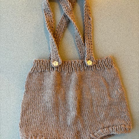 Helt nytt hjemme strikket selebukse korte bein, romper, til barn i ekte merinoull, Sandnes garn ble brukt til å strikke denne.