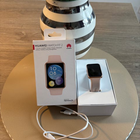 Huawei Band smartklokke for unisex bruk, i rosa farge. Smartklokken har en rektangulær skjerm og leveres med ladekabel. Den kan kobles til telefon for varsler og aktivitetsmåling.