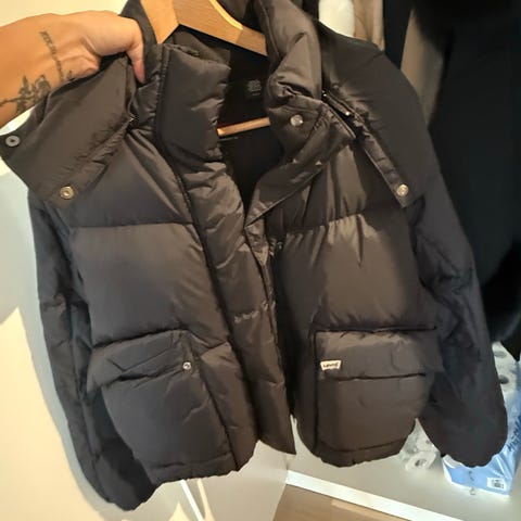 Lite brukt Levi's boblejakke i svart farge, størrelse M for kvinner. Jakken er kjøpt for 3990,-