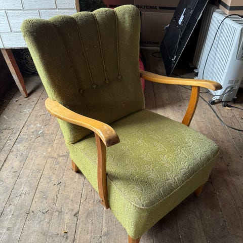 Vakker nett gammel stol til lesekroken som ikke er så plasskrevende i meget fin stand