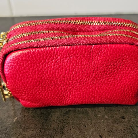 Brun lommebok, flere lommer med og uten glidelås