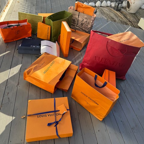 Lois Vuitton, Saint Laurent og Gucci esker selges. Eskene er rene og pene og som nye, rett fra butikken og hjem.