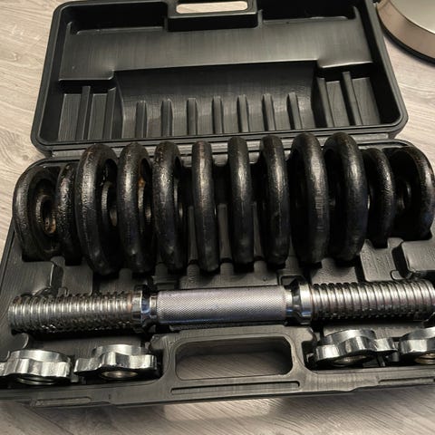 Vektsett i koffert 6kg selges, helt nytt. Må hentes.