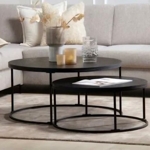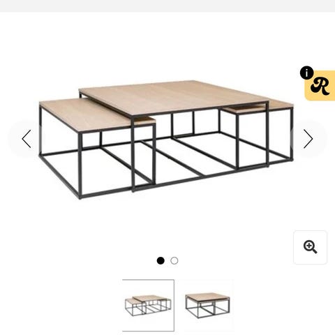 Uåpnet. Med sin hvitlaserte eikfiner bordplate og sort understell, gir dette bordet en elegant og moderne touch til ethvert rom. Dette sofabordsettet er ekstremt allsidig med sine to små bord som kan trekkes ut etter behov.
