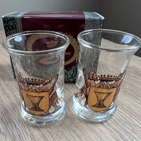 PS’. Det er en sprekk i det ene glasset. Se bilder