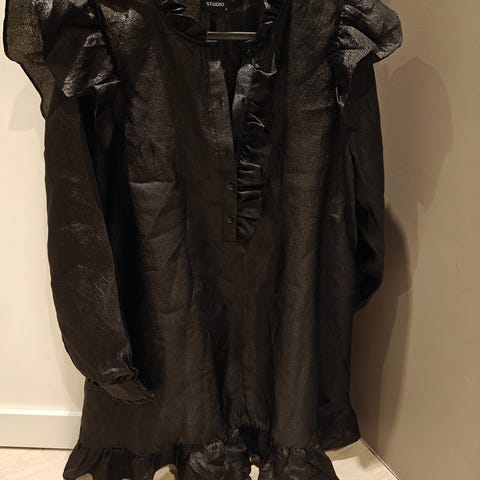 Lekker Svart Katrin Uri kjole med underkjole. Den er svart som på første bildet (ser at på noen av bildene så er den lysere, dette pga. blitz). Den er kun prøvd på ved et par anledninger, men har for mye tøy, så ønsker at noen andre skal få gleden av denne.