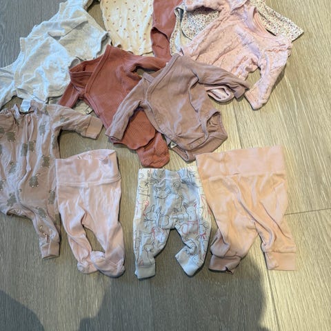 Hjemmeheklet genser, hjemmestrikket ull dress, teddy dress og en vatterte