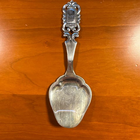 2 Serveringsskjeer med navnet Horten på skaftet. Stemplet 60 og Nysølv bak på skaftet. Lengden er 16 cm. Selges kr 150,-