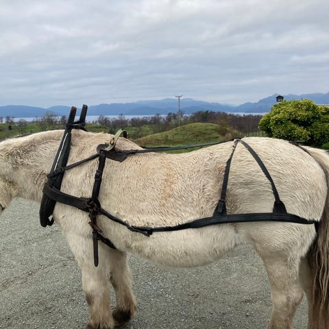 Seletøy laget i svart lær. Seletøyet inkluderer justerbare stropper og metallspenner for tilpasning. Egnet for bruk ved kjøring og innkjøring.