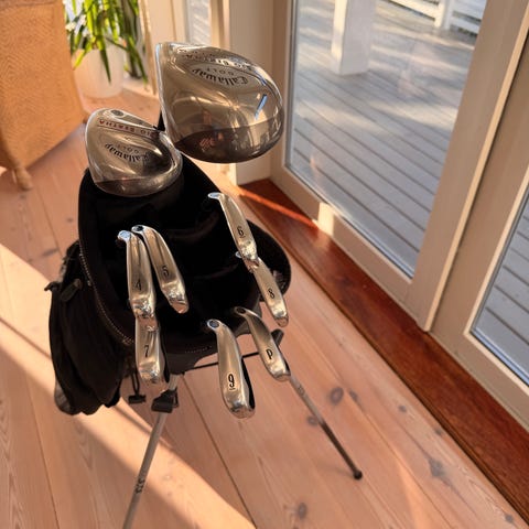 Lite brukt. Skaftet er 42.9 tommer, uten adapter. Stabilt og fint.