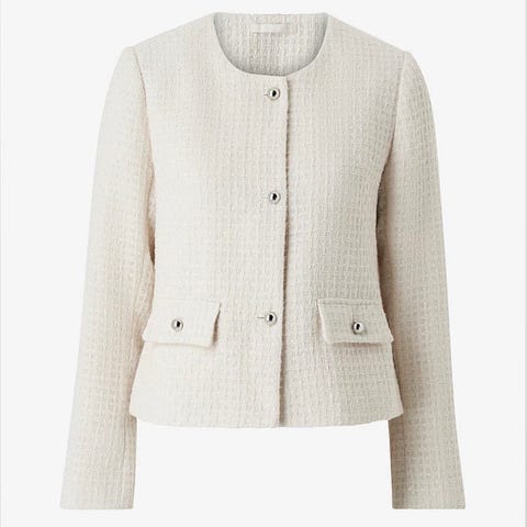 Ellos blazer i svart farge, størrelse 40, men er liten i størrelsen så den er mer en str 38. Gullfargete glidelåser på lommer og på ermer. Lukkes med en knapp. Fin kvalitet som ikke nupper. Jakken har en figurnær passform med en lengde som ender ved hoften.