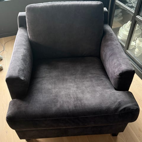 Pent brukt sofa /spisestue sofa. Følger med bein så den kan brukes til begge deler. Mørkt grått trekk, lys eike ben.