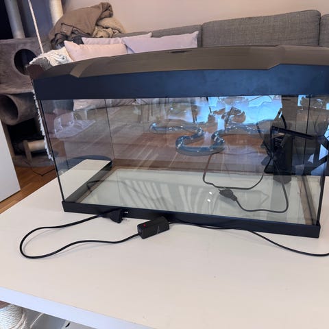 60l akvarie med mange dekorasjoner og utstyr