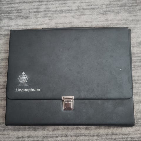 Uåpnet pakke med franskkurs (på engelsk). Bok på 416 sider pluss 2 cd-er.