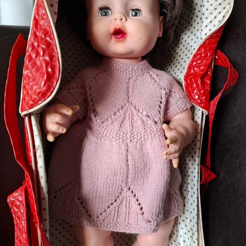 Tommelise dukke fra rayko vinyl mangler litt øyevipper ellers hel og pen er ca 40 cm lang sender i posten bruker ikke fiks ferdig men vipps klær følger med selvfølgelig