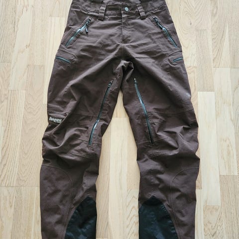 Selger pent brukt Bergans Folgefonna Lady bukse (S). Buksen har har justerbare seler, glidelåslommer og knappelukking. Materialet er tilpasset utendørs bruk og gir funksjonalitet for ulike værforhold.