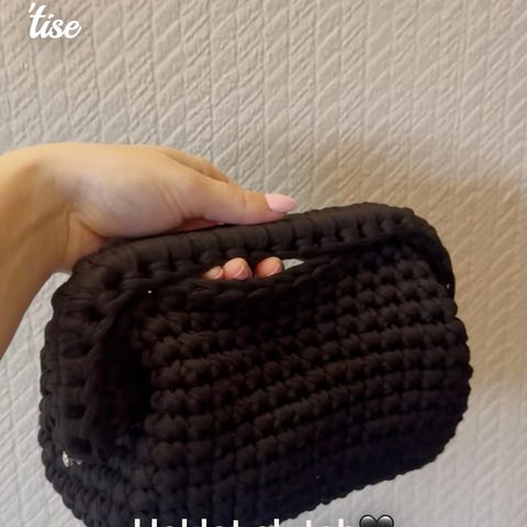 Stor svart heklet veske selges, da den ikke blir brukt.