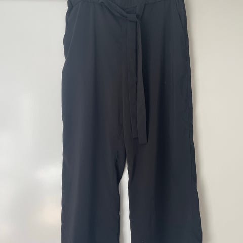 Zara bukse i størrelse M, farge svart. Elastisk midje og belte med knyting i livet. Kort på bena, rekker til litt ned på leggen.