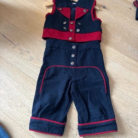 Fint brukt bunadsbukse og vest. I størrelse 122. Ingen skader eller bruksmerker.