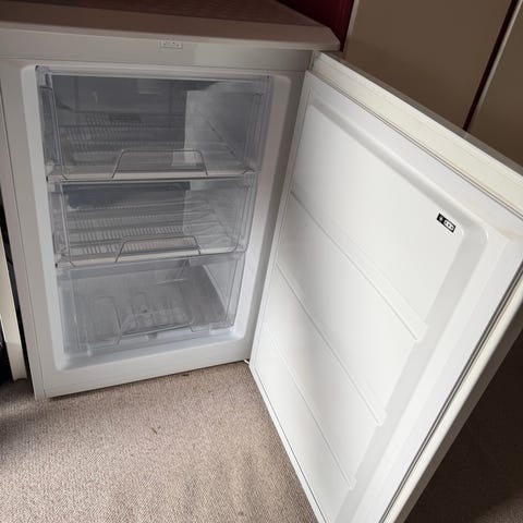 Kjøpt brukt. Er misfarget på sidene. Vi har hatt det i en utebod et par år. Fungerer helt fint. Kan ikke garantere for lukt.