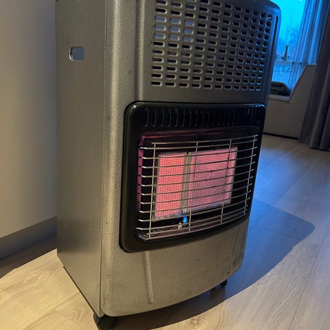 Vera gassovn , grå farge. Veltesikring og slukkemekanisme Egnet for oppvarming av mindre rom eller som ekstra varmekilde. Aldri brukt, kun stått lagret tørt, 1 år gammel.
