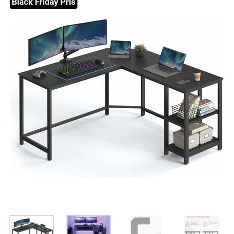 Hev og senk hjørnepult 220x220, skuffeseksjon på hjul og sjalusihylle selges