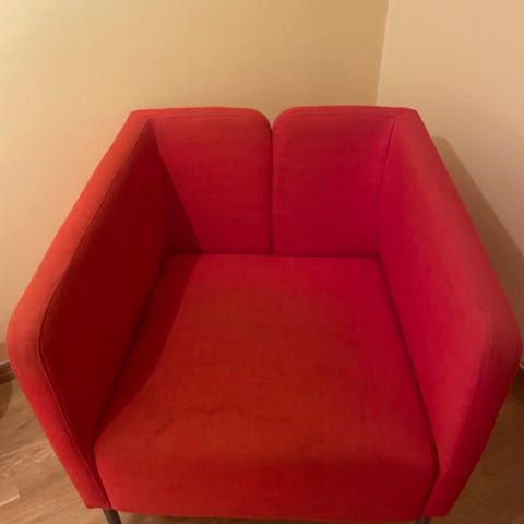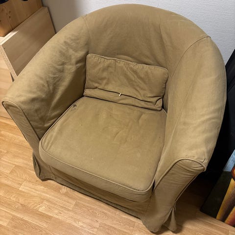 Se sprekk i sete. Har vært sånn så lenge vi kan huske (35 år), men har ikke påvirket funksjonen. Gi gjerne en lyd om når det kan passe å hente.