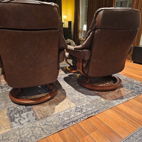 Veldig behagelige og gode stoler som kan vippes bakover med fotstøtte, må prøves